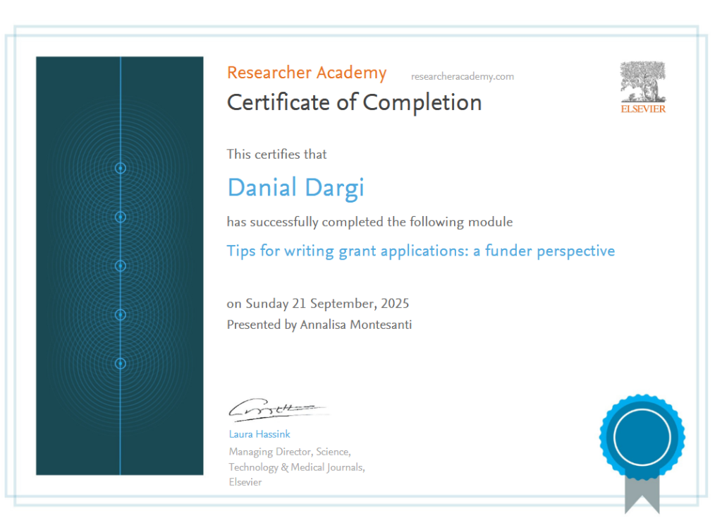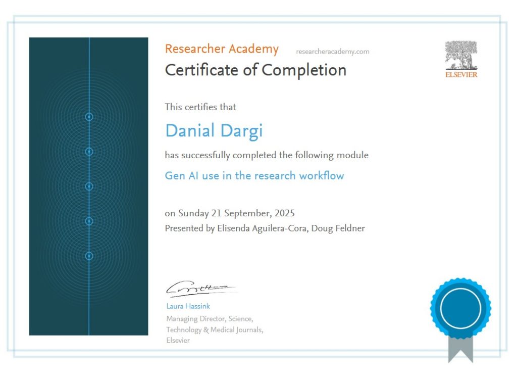 کسب مدرک از شرکت بین المللی الزویر یکی از بزرگترین و معتبرترین ناشران مطبوعات پزشکی و علمی در جهان و مقر آنها در آمستردام (هلند) است