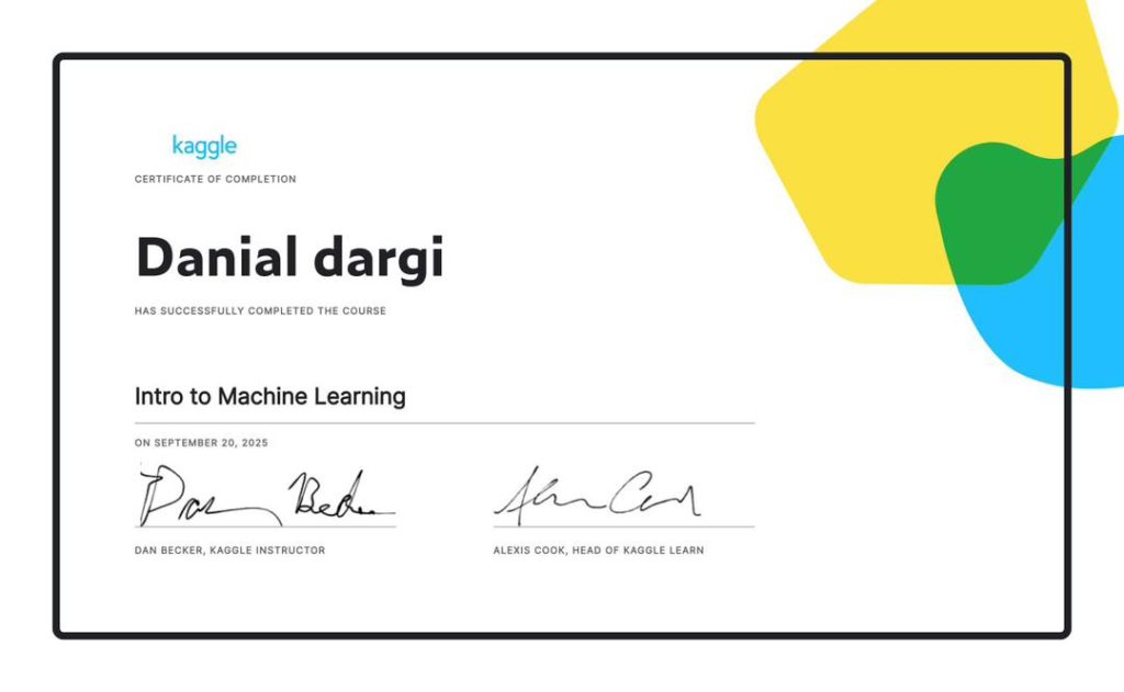 مدرک ماشین لرنینگ از کگل (kaggle) یکی از زیر مجموعه های گوگل که بزرگترین جامعه مهندسان در جهان است