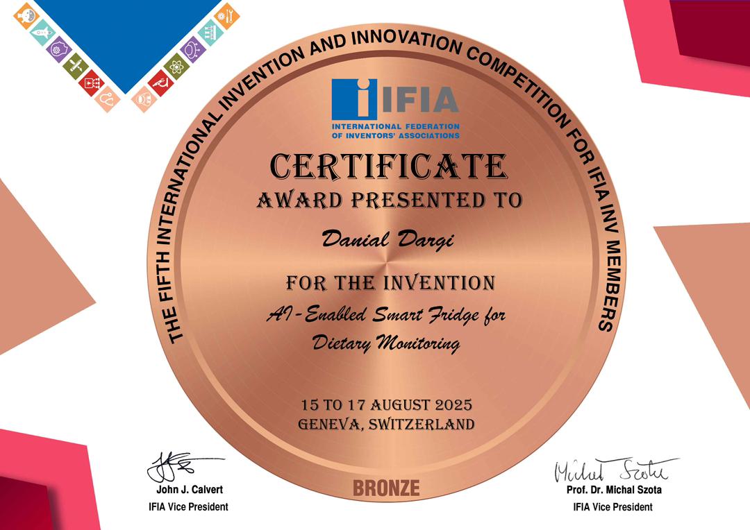 مدال برنز مسابقات اعضا سازمان مخترعین جهانی (ifia)